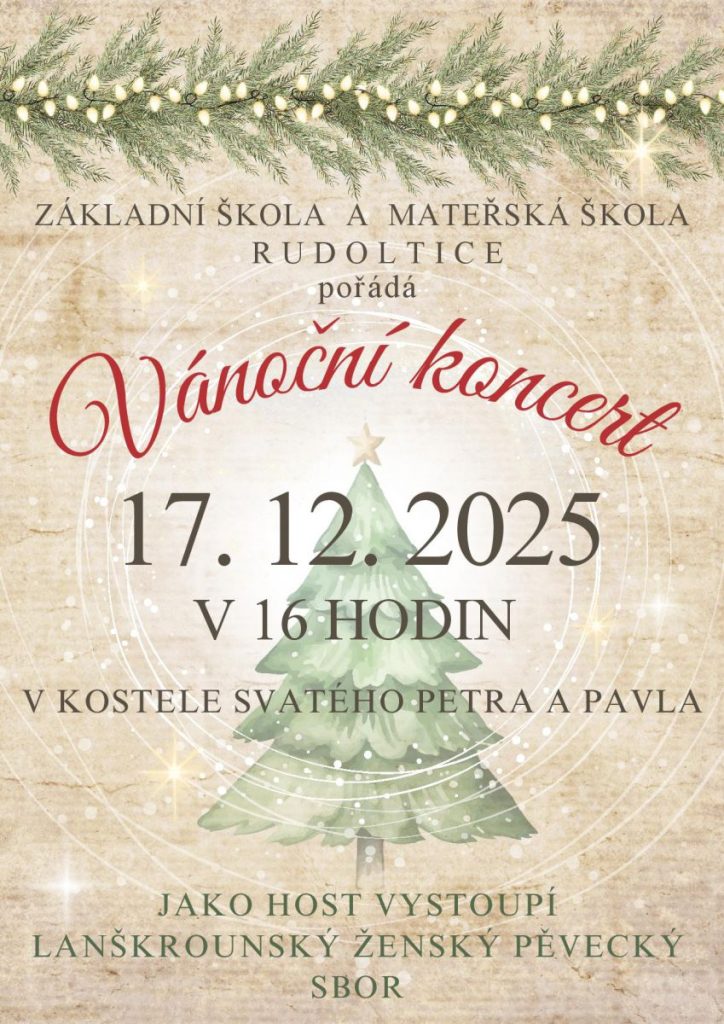 Ve středu 17. 12. od 16 hodin se v našem kostele uskuteční již Vánoční koncert, který pořádá ZŠ MŠ Rudoltice. Jako host vystoupí Lanškrounský ženský pěvecký sbor.